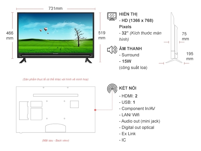 | Kích cỡ màn hình | 32 inch |
