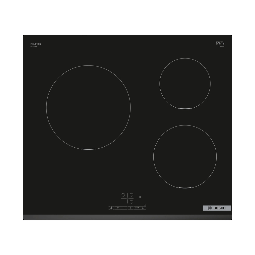 - Bếp từ Bosch 3 vùng nấu lắp âm PUC631BB5E kiểu dáng sang trọng, sở hữu tổng công suất lớn lên đến 4600W giúp nấu nhiều món cùng lúc nhanh chóng, thiết kế lắp âm sang trọng, đa dạng tính năng an toàn đáp ứng nhu cầu sử dụng tốt cho gia đình.