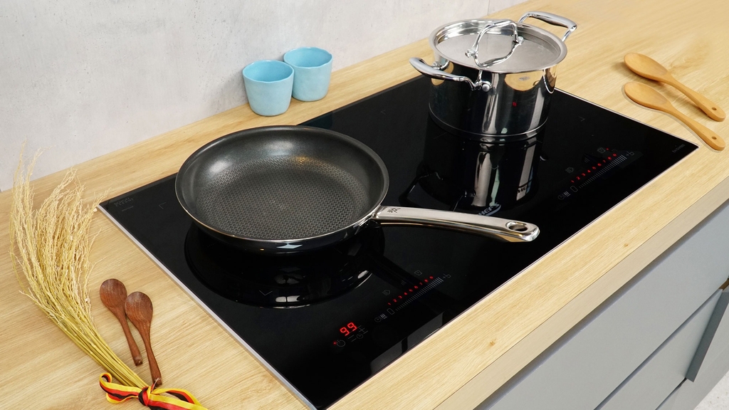 - Bếp sử dụng 2 bảng điều khiển riêng biệt cho 2 vùng nấu. Phím điều khiển dạng trượt slide, điều chỉnh 9 mức công suất +booster siêu nhạy kể cả khi tay ướt.