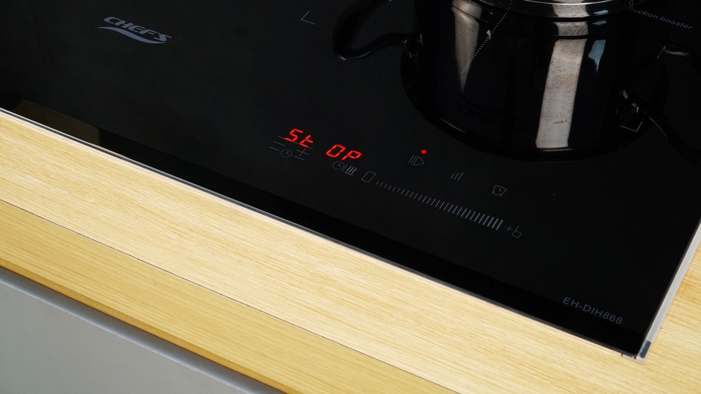- Hai vùng nấu trên bếp Chef's EH-DIH868 được thể hiện bằng hình dấu + cách điệu tạo nét đẹp độc đáo cho bếp.Phím điều khiển mềm mại với đầy đủ các tính năng hiện đại.