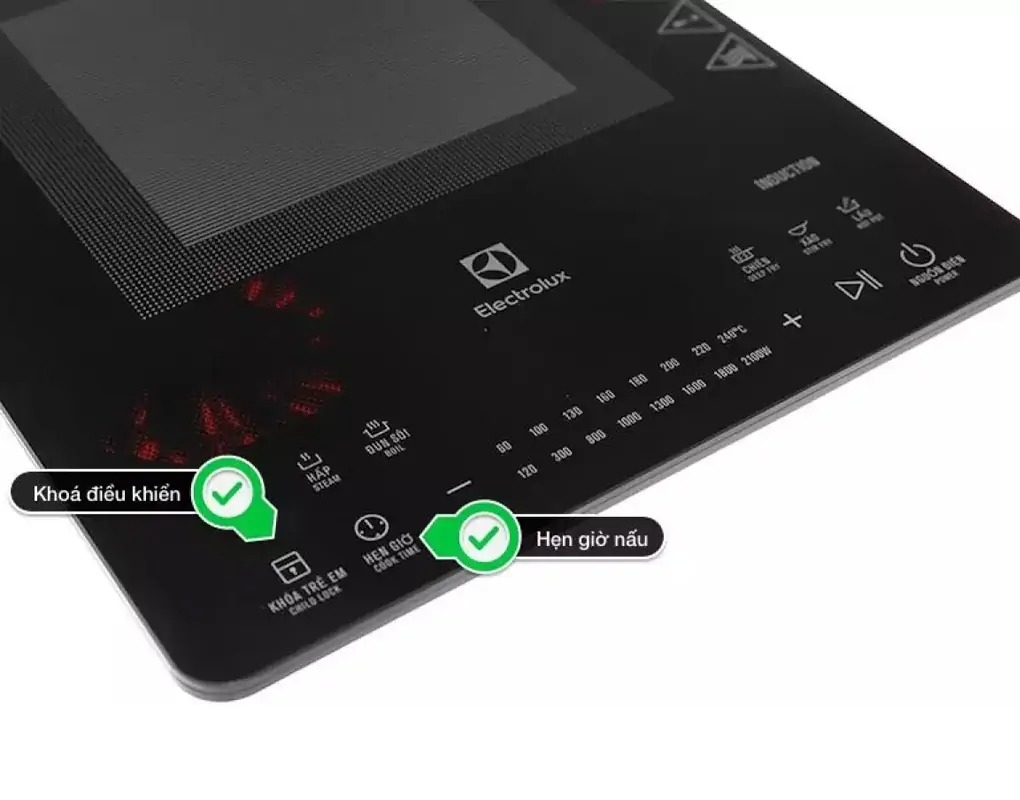 - Khóa bảng điều khiển giúp người sử dụng thêm an tâm khi sử dụng bếp từ