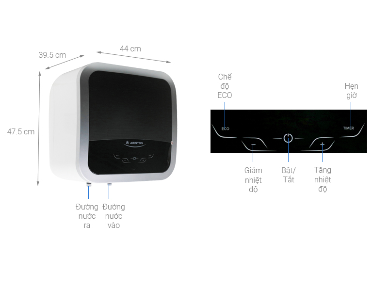 Công nghệ Eco-Evo tiết kiệm 14% điện năng Van cấp nước tích hợp 3 trong 1 (Khoá - Lọc - Mở) Điều khiển và hiển thị chính xác nhiệt độ Đèn báo nước nóng sẵn sàng giúp bạn an toàn Có màn hình hiển thị nhiệt độ Hệ thống tạo Ion bạc kháng khuẩn làm sạch nước |