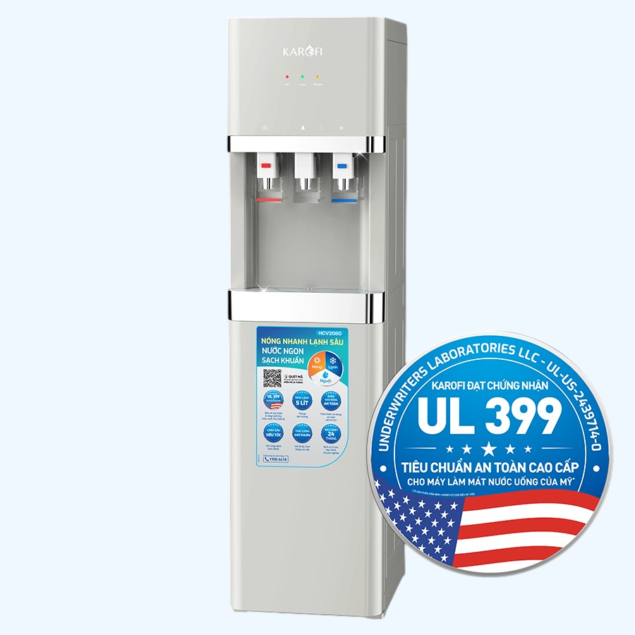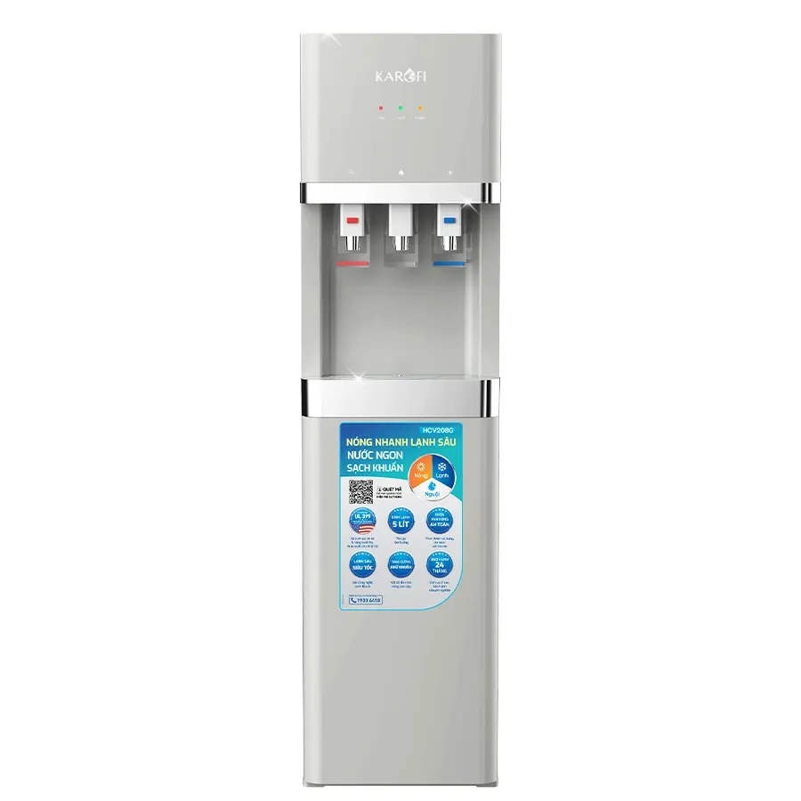 - Karofi HCV208G là trợ thủ đắc lực cho tổ ấm hiện đại, mang đến trải nghiệm nước uống vượt trội với khả năng làm nóng siêu tốc, làm lạnh sâu mát lạnh, cùng hệ thống lọc diệt khuẩn an toàn tuyệt đối. Mỗi lần lấy nước, là một lần tận hưởng sự tiện nghi, sạch khuẩn và yên tâm cho sức khỏe cả gia đình.