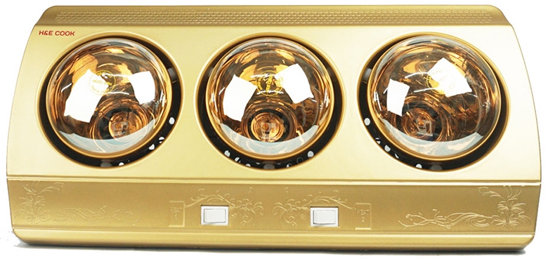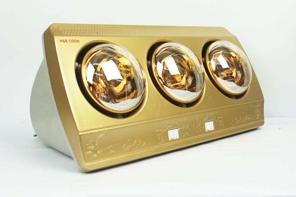 Đèn sưởi nhà tắm H&E COOK 3 bóng HE03D với gam màu vàng thời thượng cùng hoa văn trang nhã mang đến tính thẩm mỹ cho không gian nhà tắm.
