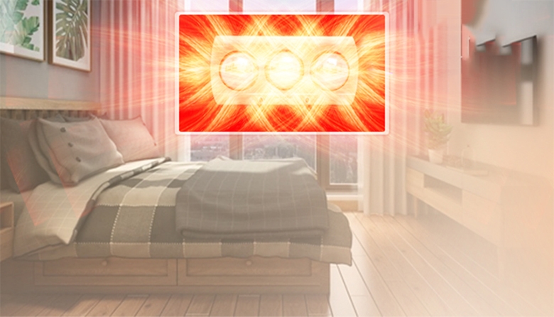 Đèn sưởi nhà tắm H&E COOK làm ấm bằng khúc xạ tia hồng ngoại giúp tiết kiệm điện năng và đặc biệt là an toàn cho sức khỏe, không làm khô da