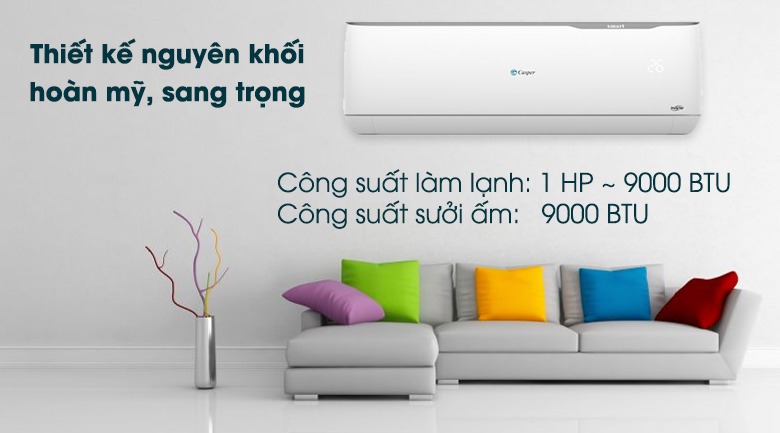 - Thiết kết hiện đại, sang trọng với tông màu trắng, cùng các góc cạnh được bo tròn tạo cảm giác mềm mại cho sản phẩm. Công suất 9000btu, chiếc điều hòa này phù hợp với những không gian nhỏ dưới 15m2 như phòng ngủ, phòng khách hay phòng làm việc nhỏ.