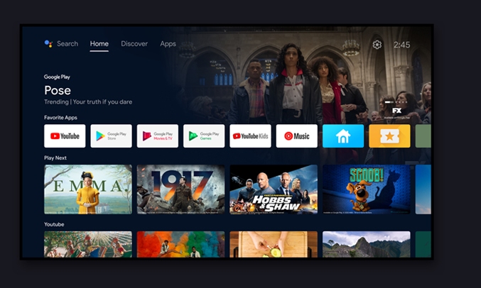 - Giao diện hệ điều hành Google TV thiết kế hiện đại, các nội dung phân bổ hợp lý giúp bạn tiếp cận và lựa chọn các chương trình giải trí, phim ảnh, ứng dụng tiện lợi.