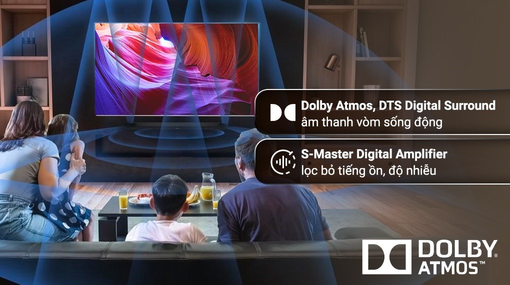 - Công nghệ Dolby Atmos cùng với S-Force Front Surround tạo cho bạn cảm giác như đang ngồi thưởng thức những bản giao hưởng thính phòng nhờ công nghệ âm thanh 3 chiều sống động.
