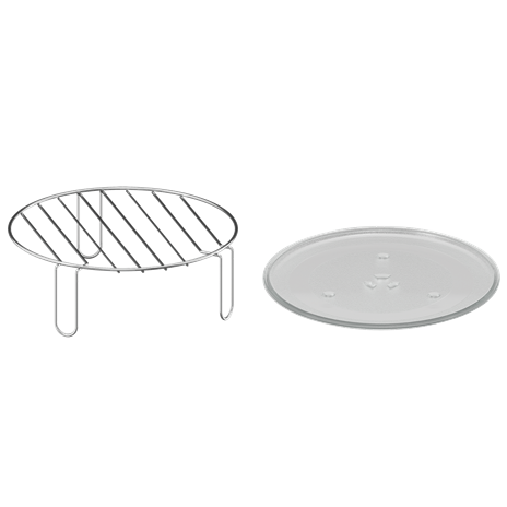 Phụ kiện đi kèm: khay kính, đĩa xoay, đế xoay, vỉ nướng
