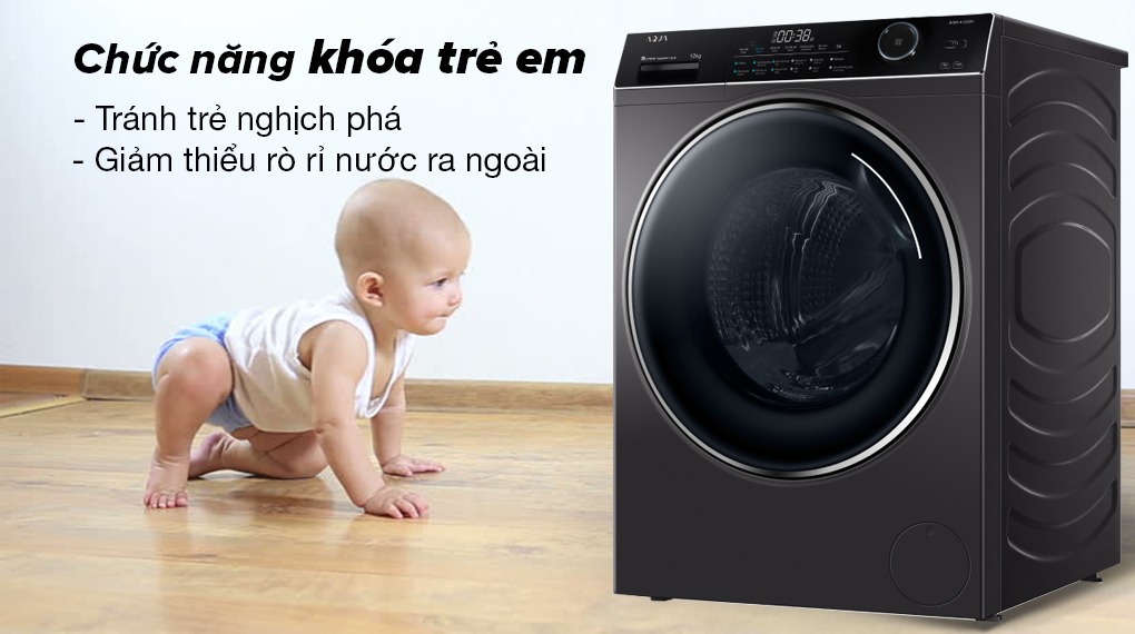 - Khóa trẻ em: Tránh trẻ nghịch phá và giảm thiểu tình trạng nước bị chảy hoặc rò rỉ ra ngoài khi máy giặt hoạt động.