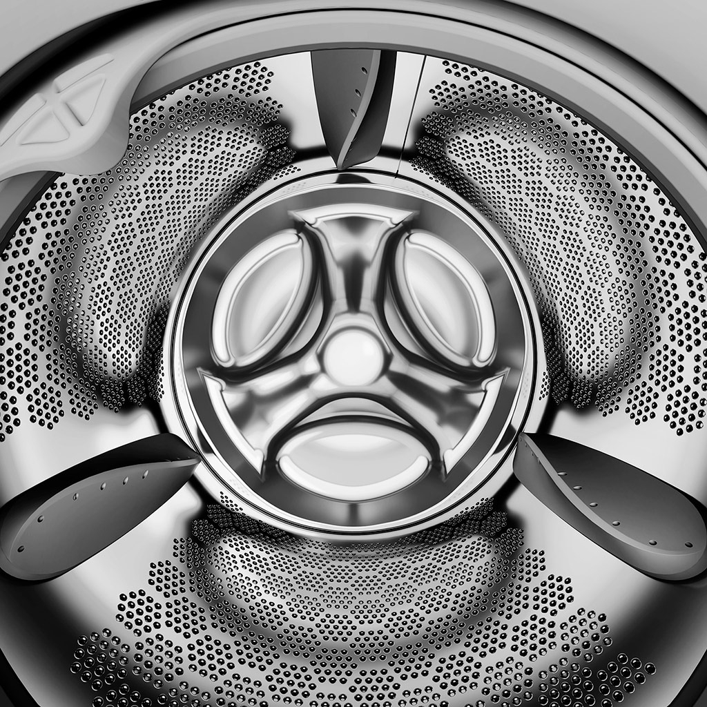 - Máy giặt Electrolux Inverter 10 kg EWF1024P5WC thiết kế các lỗ thoát nước nhỏ li ti khắp lồng giặt, giúp các tia nước phun ra mạnh mẽ, đảm bảo hiệu quả giặt sạch quần áo đồng thời giảm hiện tượng sờn rách do quần áo ít ma sát với lồng giặt.