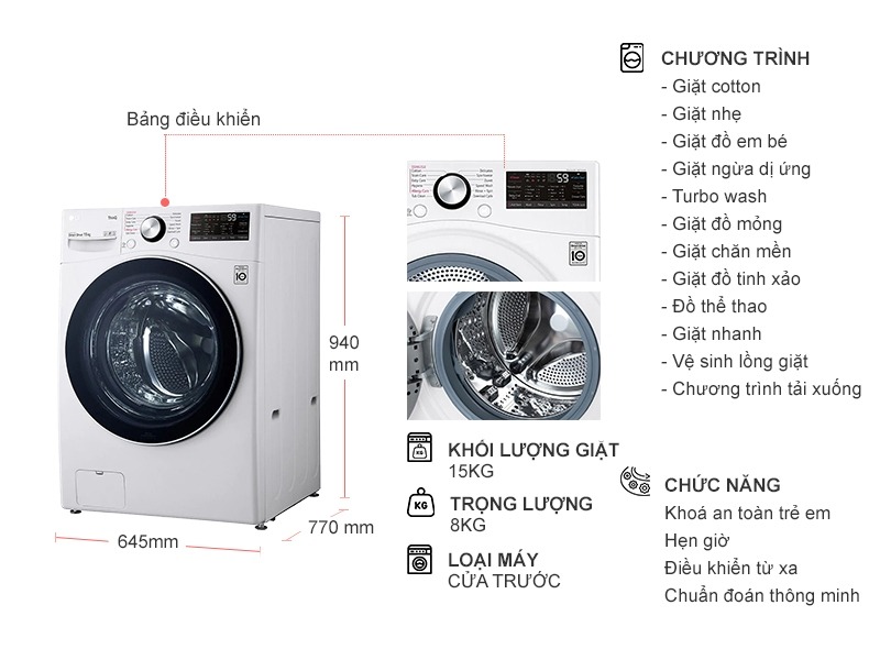 Máy giặt LG AI DD Inverter 15 Kg F2515STGW được trang bị công nghệ AI DD