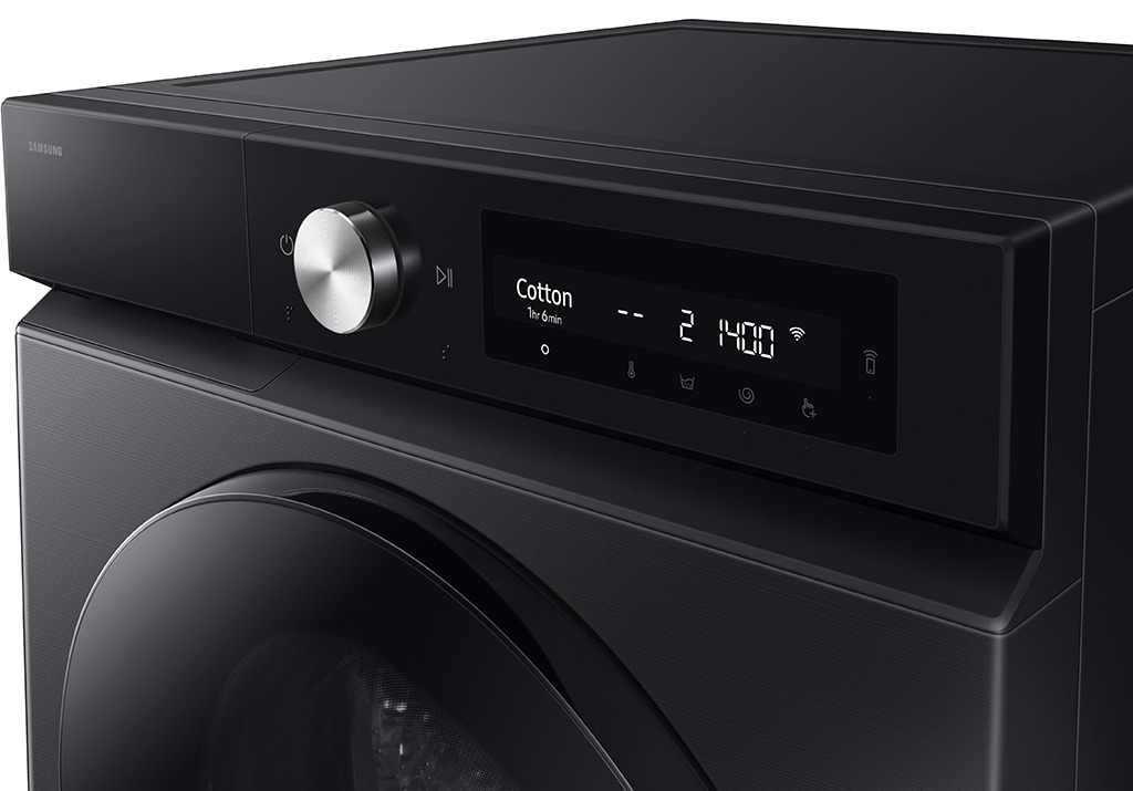 - Máy giặt Samsung Bespoke AI EcoBubble Inverter 10 kg WW10DB7U34GBS được trang bị bảng điều khiển thông minh AI Control thế hệ mới có khả năng tự động ghi nhớ, phân tích và đề xuất chế độ giặt dựa theo thói quen sử dụng. Ngoài ra, màn hình hiển thị quy trình giặt dễ hiểu cùng các hướng dẫn thông minh giúp khắc phục sự cố dễ dàng.