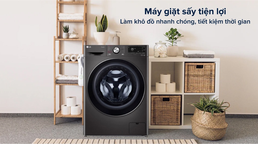 | Tiện ích | Có sấy Có thể kết hợp với máy giặt LG Twinwash cửa trước Hẹn giờ giặt Khóa trẻ em Thêm đồ trong khi giặt Tự khởi động lại khi có điện Cho phép điều khiển máy giặt từ xa qua ứng dụng LG ThinQ Tự động phân bổ nước phù hợp |