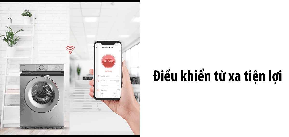 - Việc có thể điều khiển máy giặt từ xa thông qua điện thoại thông minh giúp bạn tiết kiệm thời gian và tiện lợi hơn. Bất kể bạn đang ở bất kỳ đâu, bạn vẫn có thể điều khiển máy giặt một cách thuận tiện. Điều này có nghĩa là bạn có thể chuẩn bị quần áo để giặt trước khi về nhà hoặc có thể khởi động quá trình giặt từ xa, đảm bảo rằng quần áo sẽ sẵn sàng khi bạn cần chúng.