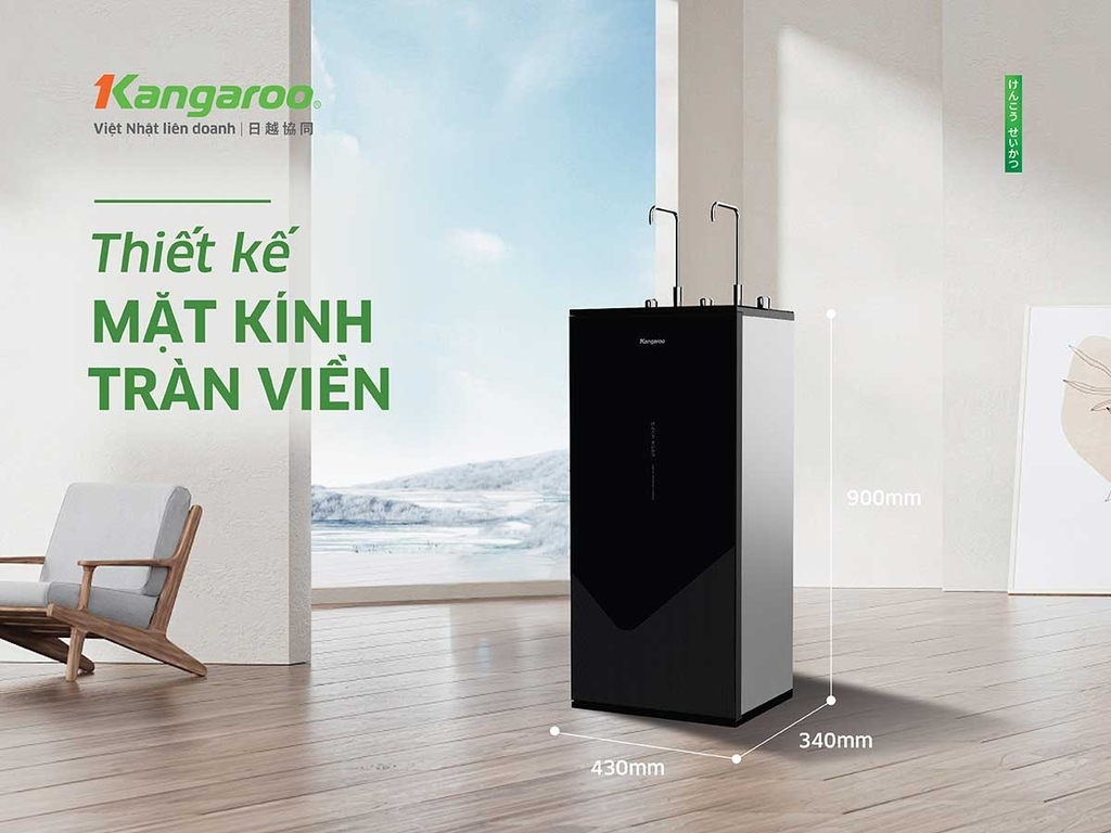 - Máy lọc nước Kangaroo Hydrogen Infinity nóng lạnh KG11V6-H4 mang kiểu dáng SLIM nhỏ gọn. Mang phong cách tối giản, Máy lọc nước Kangaroo Hydrogen Infinity nóng lạnh KG11V6-H4 có thiết kế mặt kính đen tràn viền với chất liệu kính cường lực bền bỉ giúp vẻ ngoài máy trở nên khỏe khoắn, chắc chắn hơn.