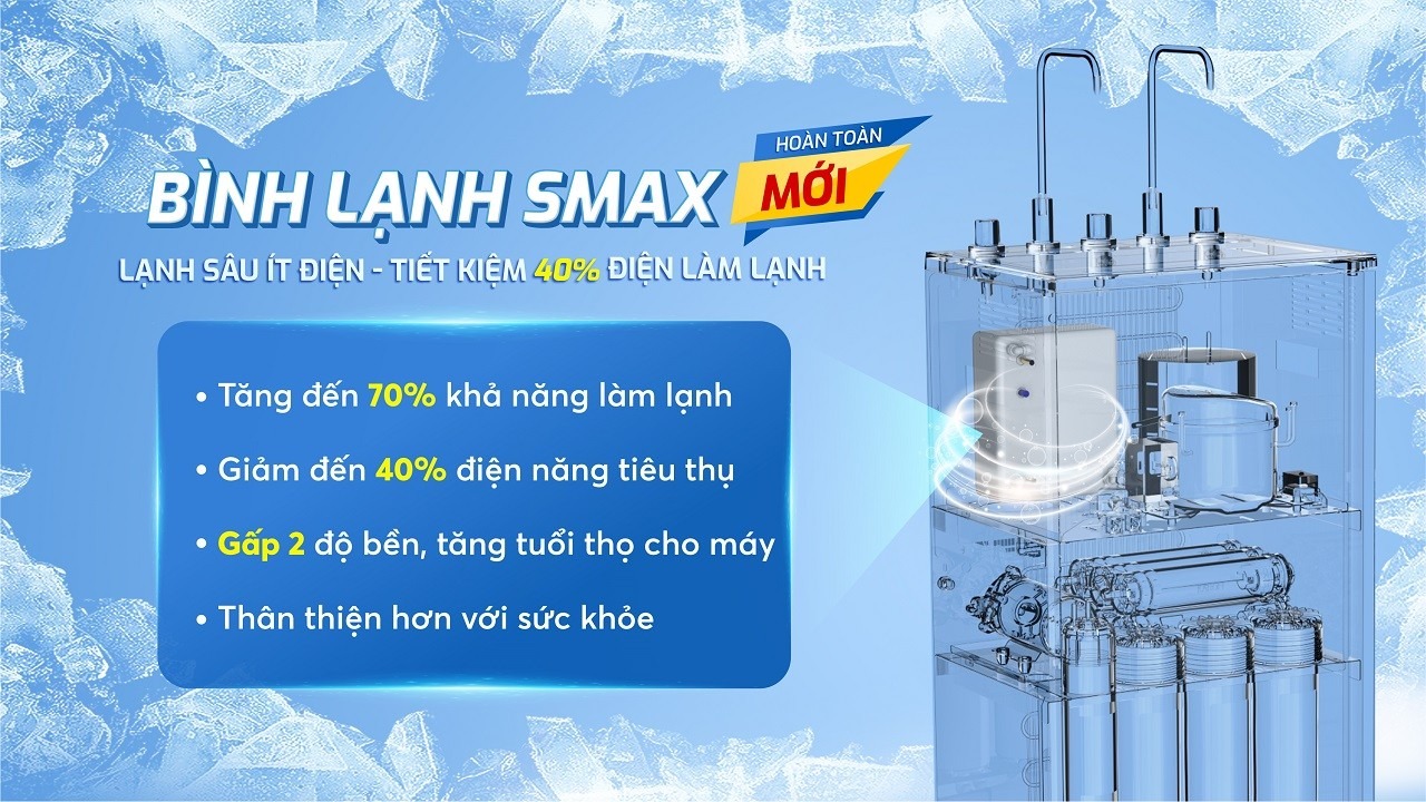 Lần đầu tiên tại Việt Nam, bình lạnh thế hệ mới Smax được ứng dụng trong máy lọc nước. Sở hữu hiệu năng làm lạnh tột đỉnh, bình lạnh Smax mở ra những trải nghiệm bất tận cho người dùng: