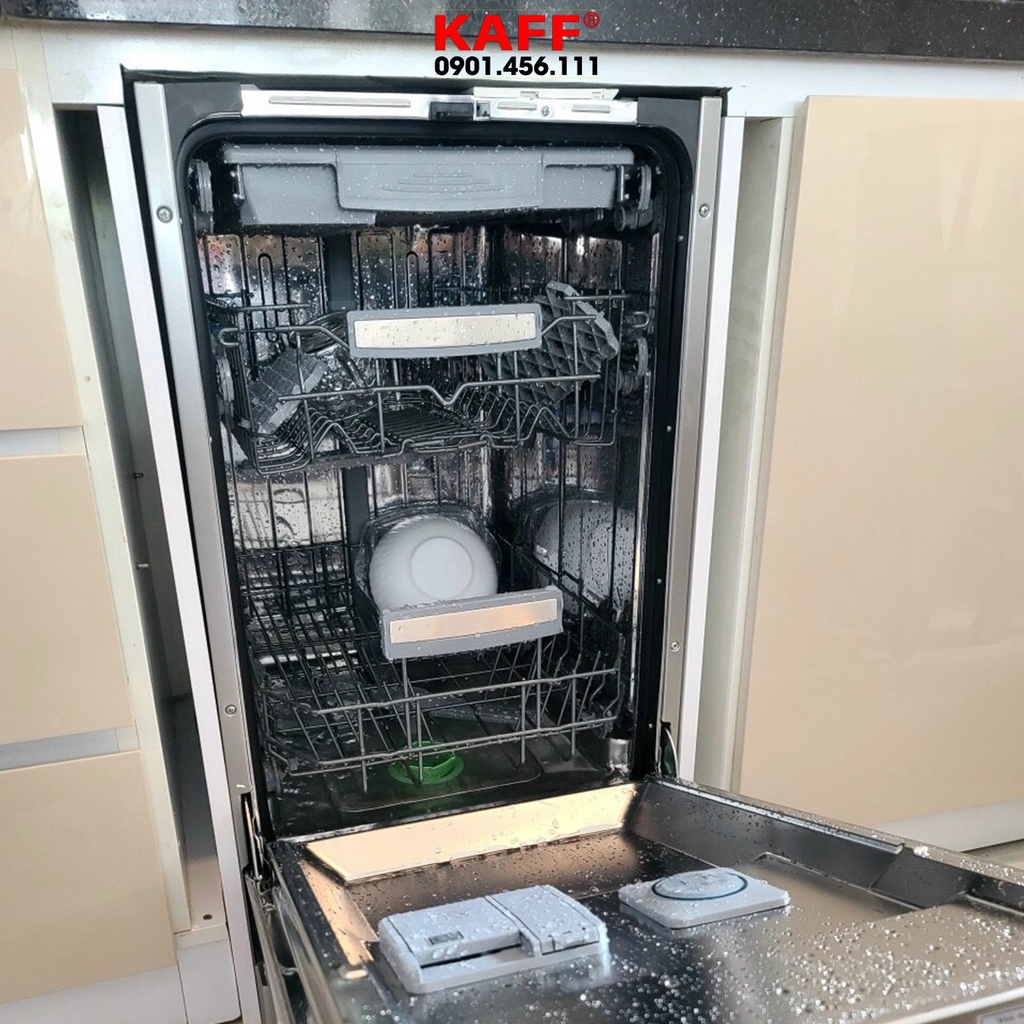 - Máy rửa chén Kaff KF-W45A1A401J được thiết kế chiều rộng thu nhỏ 45cm dễ dàng bố trí trong mọi không gian bếp. Phòng bếp nhà bạn không có diện tích, bạn muốn sử dụng máy rửa chén Kaff nhưng không có chỗ để? Tham khảo ngay mẫu máy rửa chén Kaff rộng 45cm này nha, sẽ rất hữu ích cho bạn.