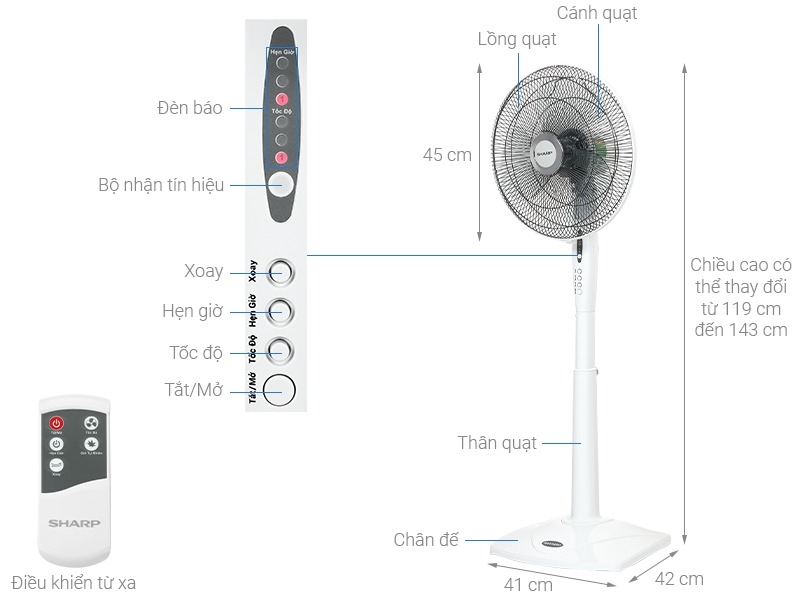 | Điều khiển | Điều khiển từ xa, Nút nhấn |