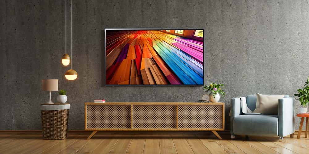 - Bên cạnh đó, tivi cũng mang đến cho không gian bày trí vẻ đẹp thanh lịch với cạnh viền nhựa vát phẳng tinh tế kết hợp cùng chân đế chữ V ngược thuôn mảnh. Dù bạn bày trí tivi bằng cách treo tường hay đặt kệ thì không gian nội thất cũng sẽ được điểm tô một cách đẹp mắt.