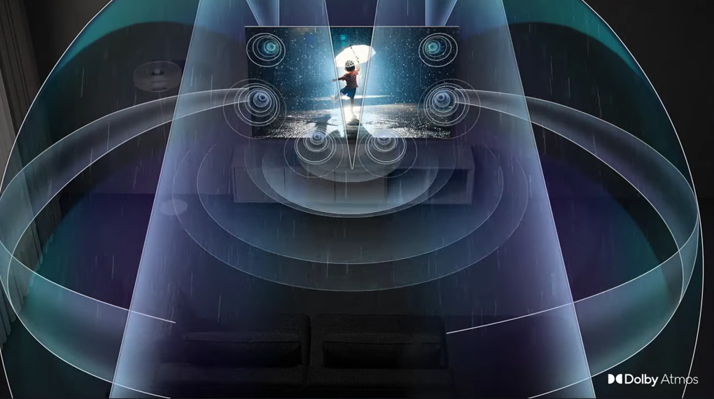 - Công nghệ OTS và Dolby Atmos mang đến trải nghiệm âm thanh 3D siêu thực cùng hệ thống loa 2.2.2 theo dấu chuyển động trên màn hình, cho bạn đắm chìm vào nội dung giải trí từng phút giây