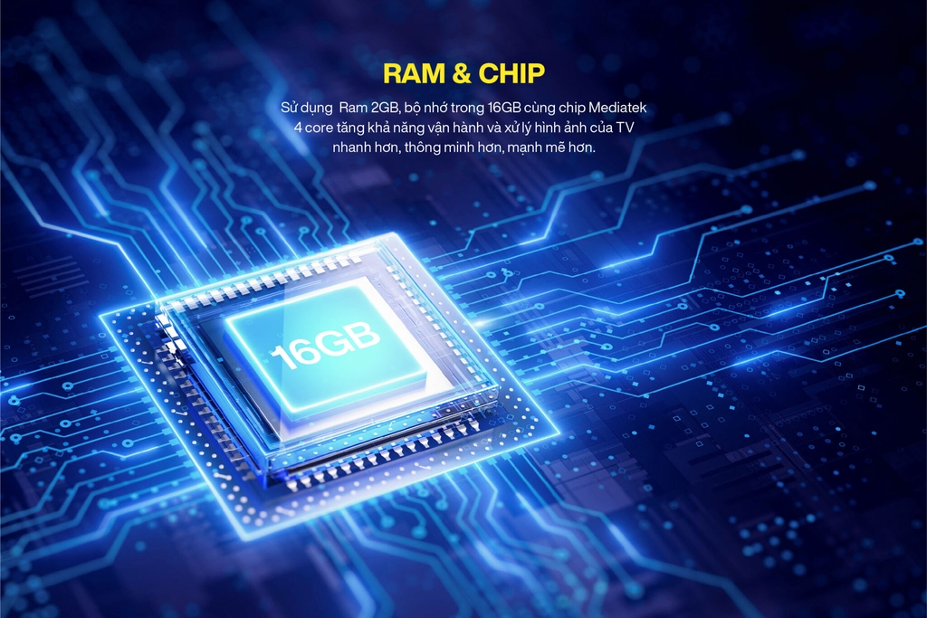 Bộ xử lý chip thông minh của Asher với Ram 2GB, bộ nhớ trong 16GB cùng chip 4 core tăng khả năng vận hành và xử lý hình ảnh của tivi nhanh hơn, thông minh hơn, mạnh mẽ hơn cho phép trải nghiệm những ứng dụng như xem phim, chơi games, video, ca nhạc và các ứng dụng khác một cách mượt mà, độ nét cao.