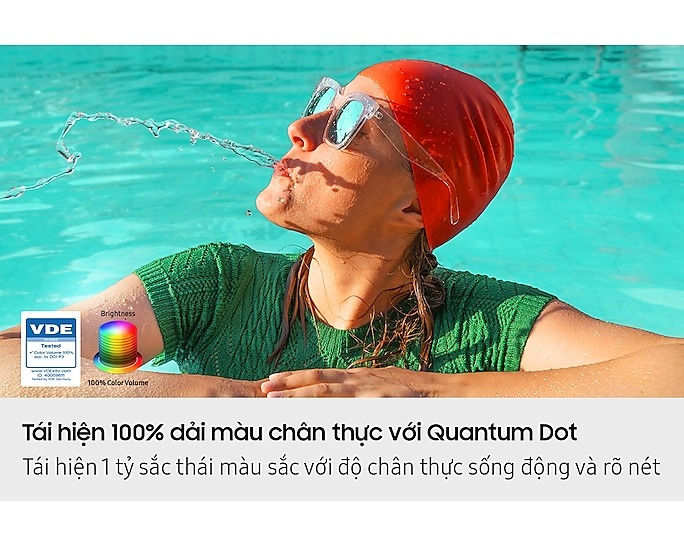 - Công nghệ Quantum Dot hiển thị 100% dải màu với độ chân thực sống động và rõ nét, cho bạn thưởng thức từng khung hình mang màu sắc cuộc sống, tuyệt đẹp ở mọi mức độ sáng.