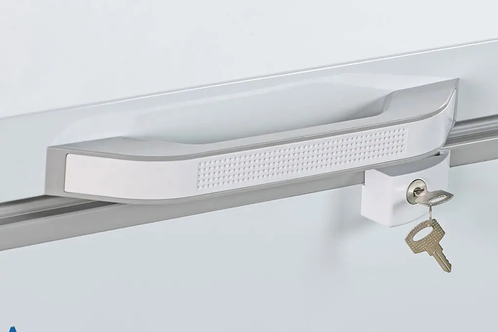 | Tiện ích | Nút điều chỉnh nhiệt độ bên ngoài tủ Khoá cửa tủ Giỏ đựng đồ Lỗ thoát nước Bánh xe |