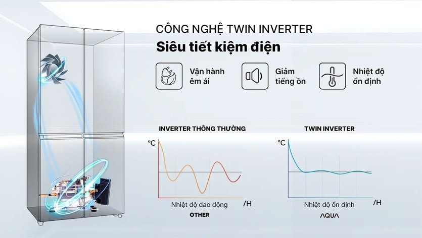 | Công nghệ tiết kiệm điện | Twin Inverter Chế độ thông minh tự điều chỉnh nhiệt độ các ngăn Chế độ kỳ nghỉ tiết kiệm điện |