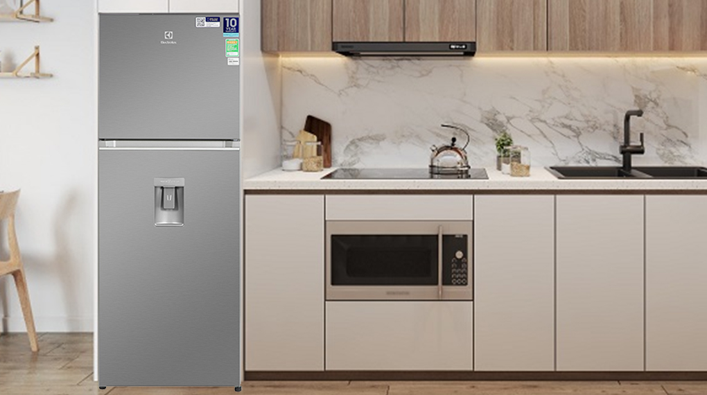 - Electrolux ETB3440K-A thuộc dòng tủ lạnh ngăn đá trên thiết kế hiện đại, đường nét tinh tế, sang trọng và nổi bật cho không gian bố trí sử dụng.