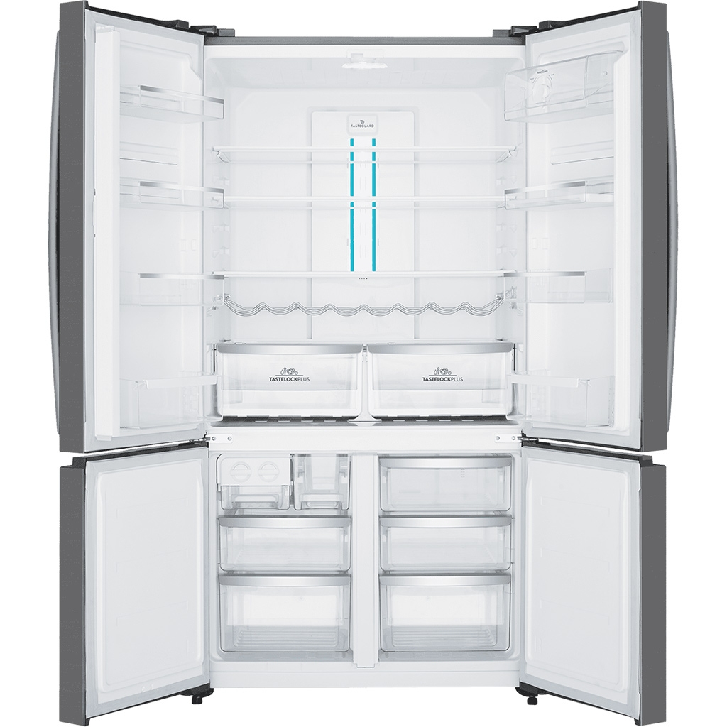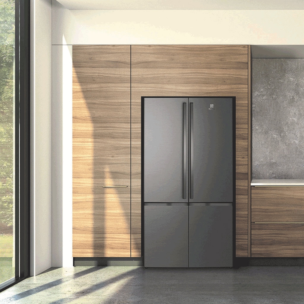 - Tủ lạnh Electrolux Inverter 541 lít EQE6000A-B có thiết kế 4 cửa với ngăn lạnh trên và ngăn đông dưới, chất liệu cửa tủ thép không gỉ phù hợp với mọi không gian bếp của gia đình Việt.
