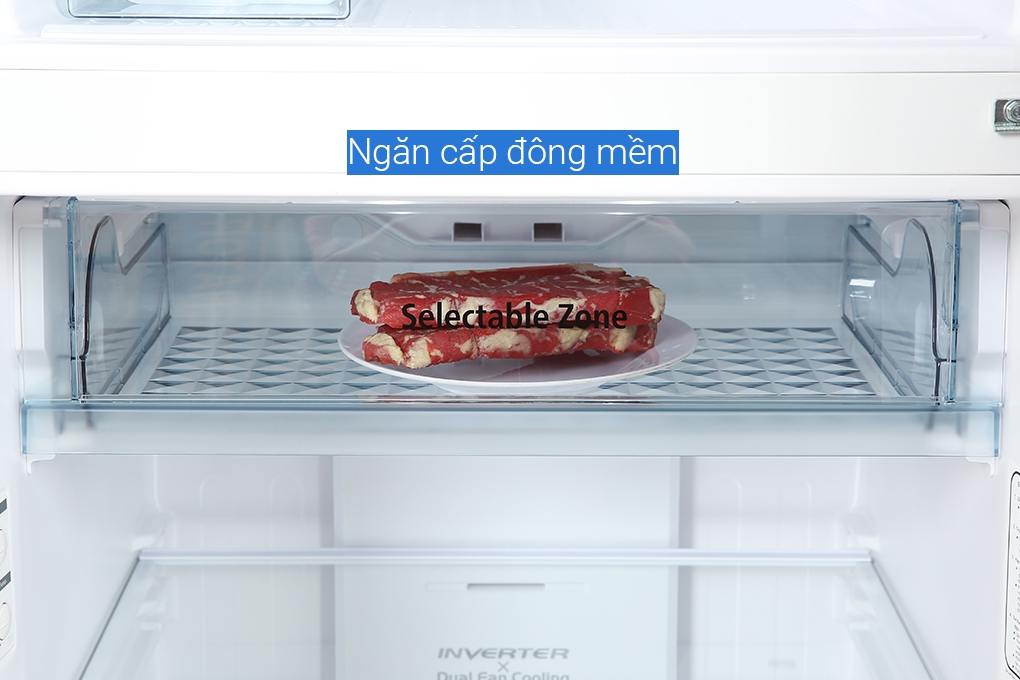 - Ngăn chuyển đổi đa năng Selectable Zone có núm vặn điều chỉnh lượng khí lạnh lưu trữ trong ngăn tùy vào nhu cầu để bảo quản thịt cá. Nhiệt độ ngăn là 1°C đến 3°C hoặc -3°C đến -1°C.