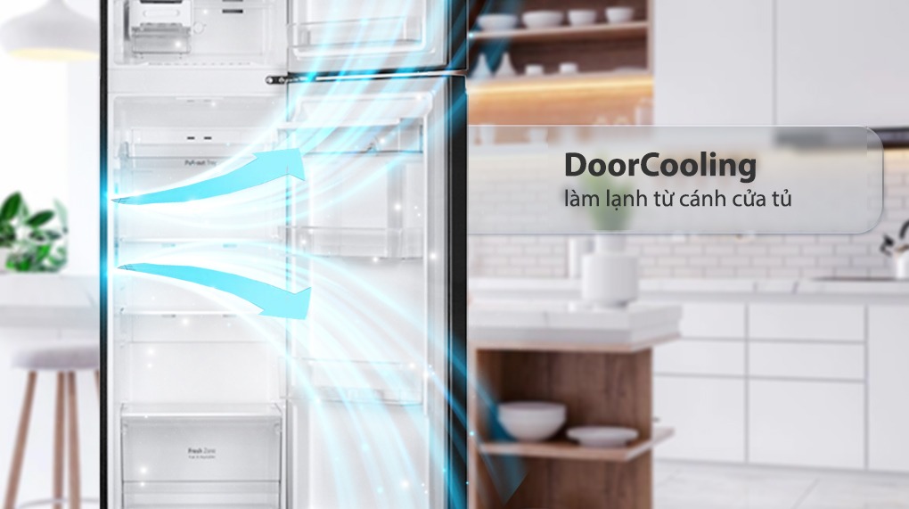 - Door Cooling, công nghệ tạo ra luồng khí lạnh từ cửa tủ cho nhiệt độ lạnh tỏa đều khắp khoang tủ, giúp đảm bảo độ tươi ngon, bảo toàn dưỡng chất của thực phẩm trong thời gian dài.