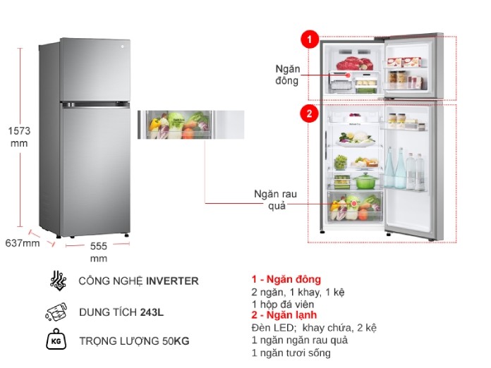 - Tủ lạnh LG Inverter 266 lít GV-B262PS