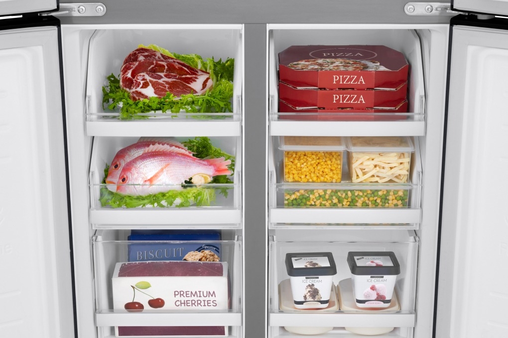 - Dung tích ngăn đá 210 lít, chia thành các khay bảo quản độc lập với mỗi khay cho 1 bên cánh tủ giúp bạn phân loại thực phẩm tốt hơn khi cần cấp đông, tăng chất lượng bảo quản, chống nhiễm khuẩn.