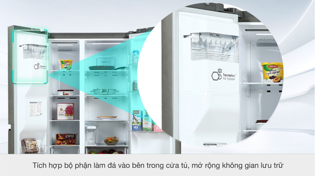 - Hệ thống làm đá tinh gọn SpacePlus™: tiết kiệm không gian, người dùng có thể thoải mái cất trữ các loại thực phẩm khác. Đặc biệt là dễ dàng lấy đá hơn.
