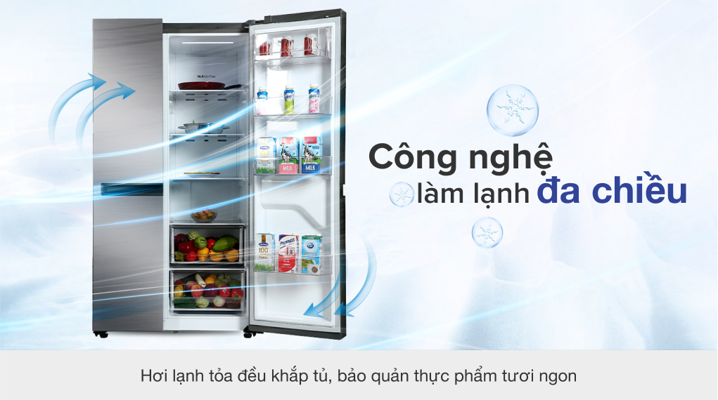 - Tủ lạnh LG sử dụng hệ thống làm lạnh đa chiều đem hơi lạnh đến mọi nơi phía trong tủ một cách nhanh chóng và đồng đều, bảo quản rau củ tươi ngon lâu hơn.