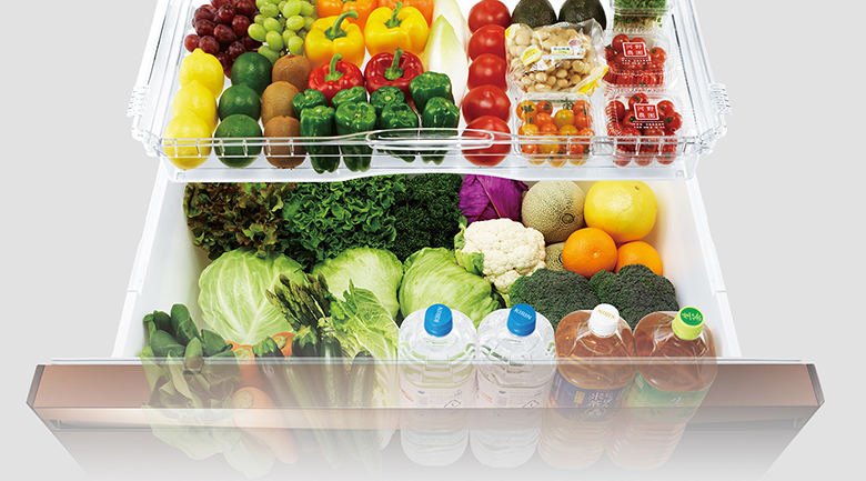 Ngăn rau quả với dung tích lớn được thiết kế độc lập, đảm bảo duy trì môi trường tối ưu cho rau củ quả với nhiệt độ và độ ẩm thích hợp nhất. Ngăn kéo dạng trượt có con lăn trợ lực (với bạc đạn thép không gỉ) giúp khay chứa được kéo mở nhẹ nhàng dù chứa đầy thực phẩm. Bên trong được chia làm 2 khay riêng biệt giúp dễ dàng phân loại và tìm kiếm thực phẩm.