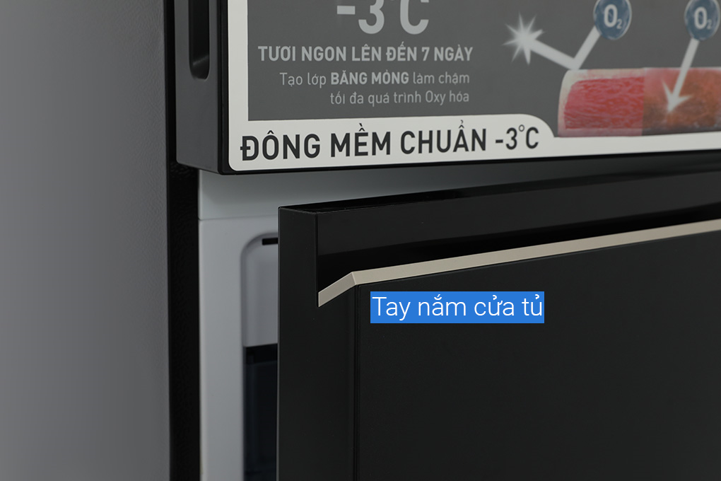 - Cửa tủ lạnh được làm từ chất liệu thép không gỉ không những giúp sản phẩm có độ bền cao hơn mà còn mang đến nét đẹp đẳng cấp, phù hợp với mọi phong cách thiết kế của gia đình bạn.