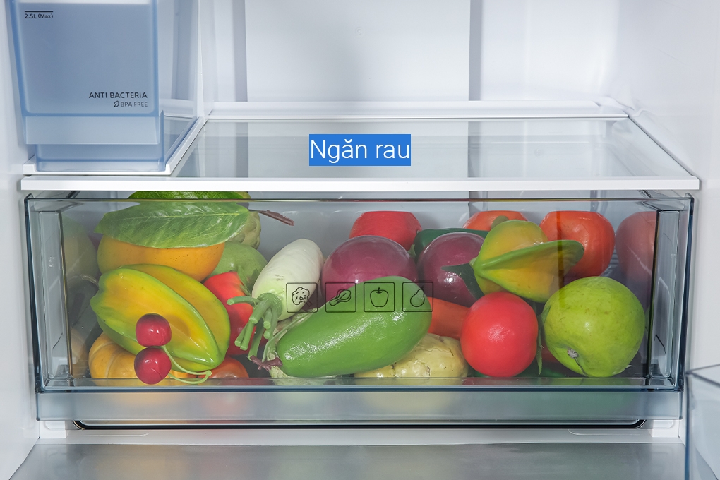 Ngăn rau quả duy trì nhiệt độ lý tưởng kết hợp bộ lọc kiểm soát độ ẩm tối ưu nhằm bảo quản trái cây và rau củ tươi xanh lâu hơn, mang đến bữa ăn đầy đủ dinh dưỡng cho cơ thể.