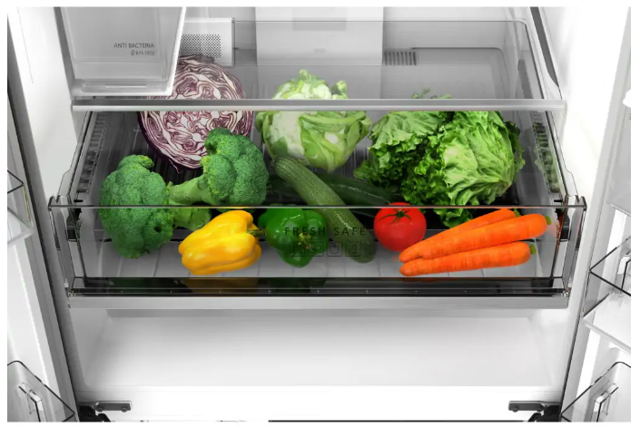Ngăn Fresh Safe với Bộ lọc kiểm soát độ ẩm là giải pháp hoàn hảo cho việc bảo quản trái cây và rau củ tươi xanh. Bộ lọc này giúp kiểm soát độ ẩm tối ưu trong ngăn rau, tạo ra môi trường lý tưởng để giữ cho thực phẩm tươi ngon và bền bỉ. Khả năng giữ ẩm cao này giúp rau quả không bị khô héo hay mất độ tươi xanh, cho phép bạn tận hưởng hương vị tươi ngon lâu hơn.