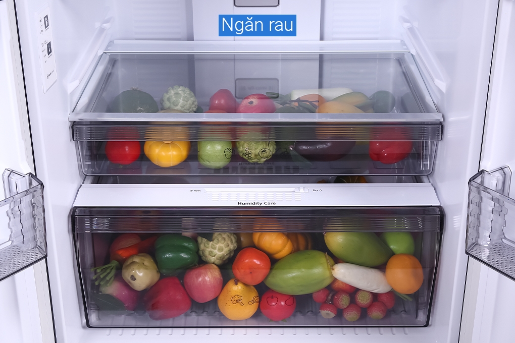 Ngăn trên dành cho các loại trái cây và rau củ nhanh hỏng. Ngăn dưới để bảo quản các loại rau củ cỡ lớn, rau xanh.