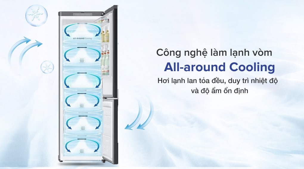 | Công nghệ làm lạnh | Công nghệ Metal Cooling Công nghệ làm lạnh No Frost Công nghệ All-around Cooling giúp kiểm soát chặt chẽ sự thay đổi nhiệt độ |