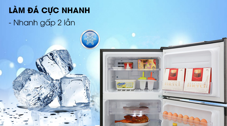 Tủ lạnh với tính năng làm đá cực nhanh sẽ mang đến cho món giải khát yêu thích của bạn những viên đá mát lạnh, nhanh gấp 2 lần so với tính năng làm đá thông thường.