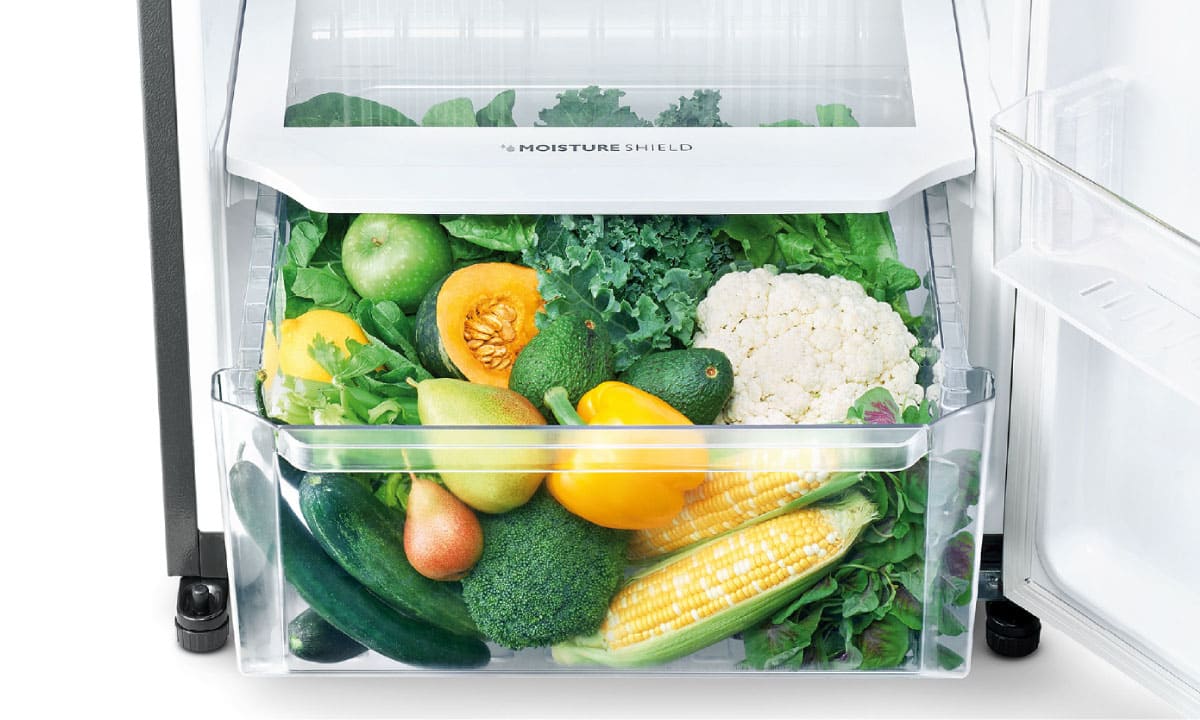 - Rau củ quả là những thực phẩm khá nhạy cảm với nhiệt độ trong quá trình bảo quản. Vì thế Tủ Lạnh Sharp Inverter 360 Lít SJ-XP382AE-SL đã được trang bị ngăn Moisture Shield dành riêng cho việc bảo quản rau củ quả. Ở ngăn này, không chỉ nhiệt độ mà độ ẩm cũng được duy trì ở mức lý tưởng để hạn chế tình trạng rau củ quả bị héo úng..