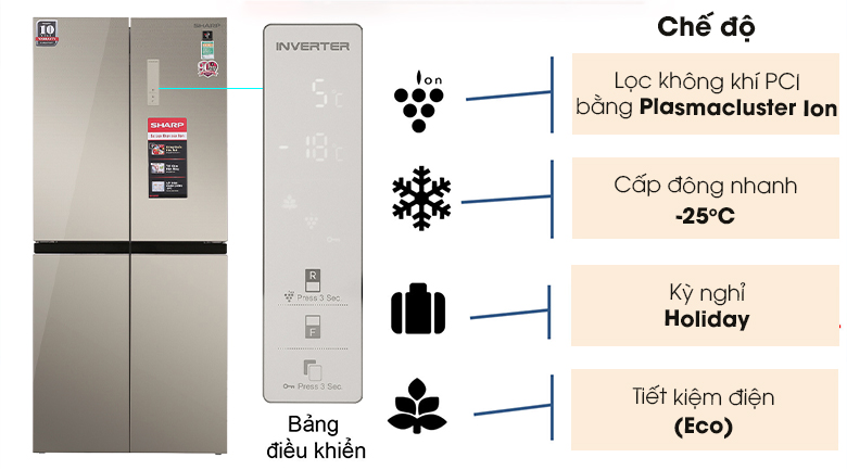 - Tủ lạnh Sharp Inverter 401 lít Multi Door SJ-FXP480VG-CH