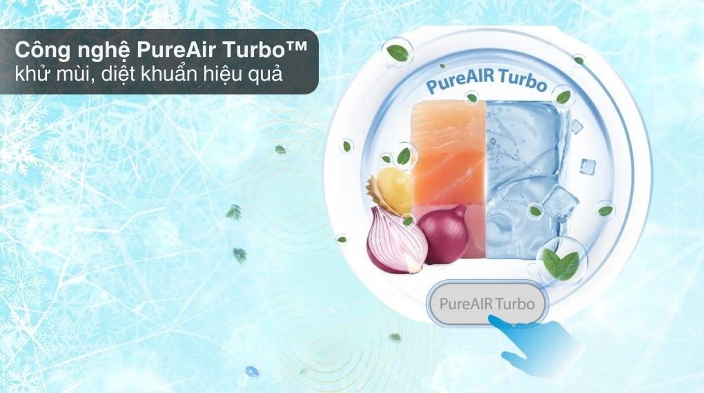 - Với bộ lọc PureAir Turbo™ được tích hợp tủ lạnh Toshiba, giúp loại bỏ mùi hôi và vi khuẩn hiệu quả nhờ cơ chế lọc mạnh mẽ và liên tục. Giúp tủ lạnh luôn sạch mùi, ngăn chặn sự phát sinh vi khuẩn, kéo dài thời gian bảo quản thực phẩm mà vẫn giữ nguyên hương vị.
