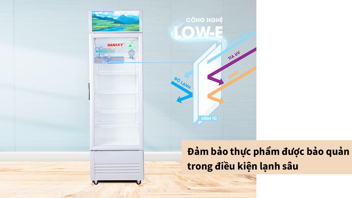 Công nghệ Low-E trong tủ mát Sanaky này mang đến nhiều tiện ích đáng kể cho việc bảo quản thực phẩm trong điều kiện lạnh sâu. Hệ thống kính phủ Low-E được thiết kế đặc biệt để hạn chế sự trao đổi nhiệt với bên ngoài, giúp giữ cho không gian làm lạnh bên trong tủ duy trì nhiệt độ ổn định và lâu hơn.